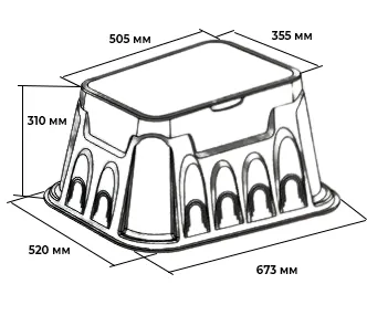 Клапанная коробка Poelsan 14" - это высококачественный продукт, разработанный для обеспечения легкого доступа к электромагнитным или ручным клапанам, а также другому оборудованию, используемому в системах автоматического полива. Она имеет следующие размеры: длина составляет 673 мм, высота 310 мм, а ширина 520 мм. Это делает ее достаточно компактной и удобной для установки в различных местах.