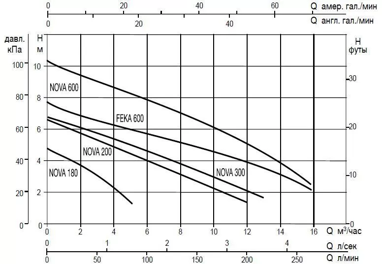 Графические характеристики дренажного насоса DUB NOVA 600 M-A - SV