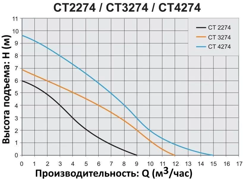 Графические характеристики дренажного насоса ELPUMPS CT 4274
