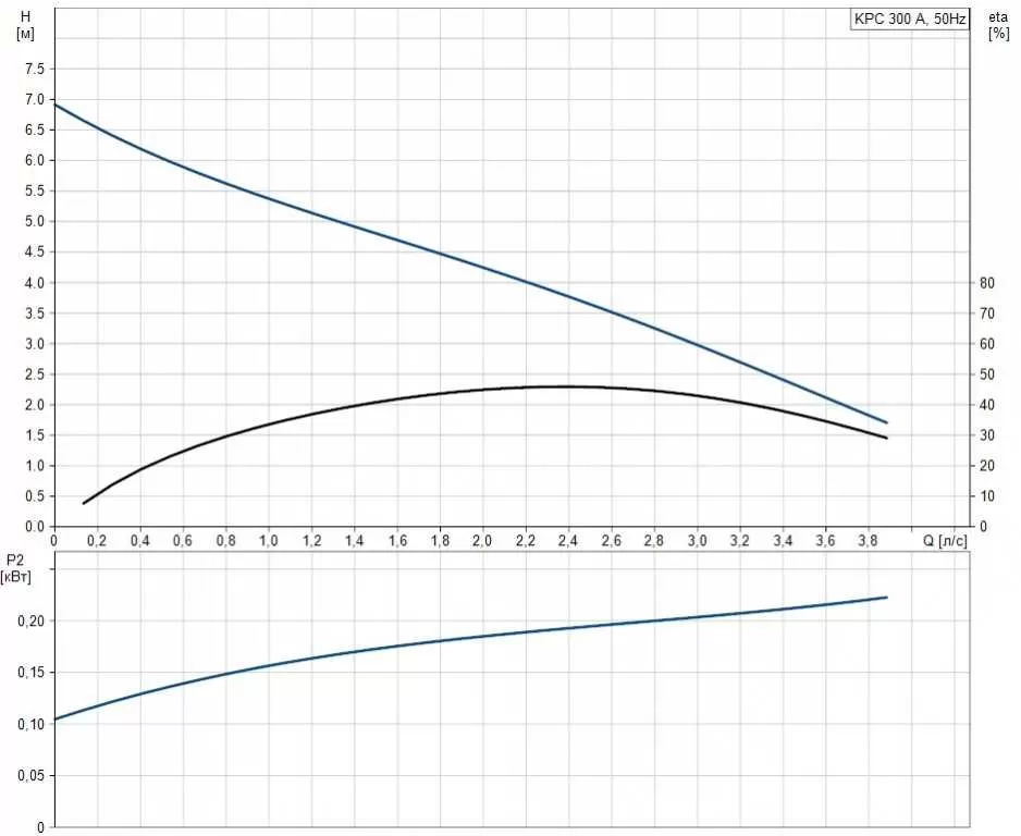 Графические характеристики дренажного насоса Grundfos KPC 300 A