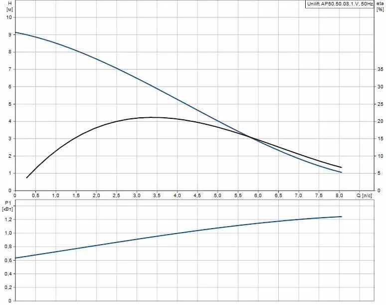 Графические характеристики дренажного насоса Grundfos GRUNDFOS UNILIFT AP50.50.08.1.V