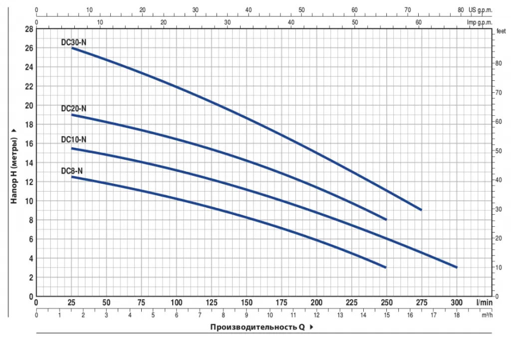 Максимальное количество воды на выходе из насоса.