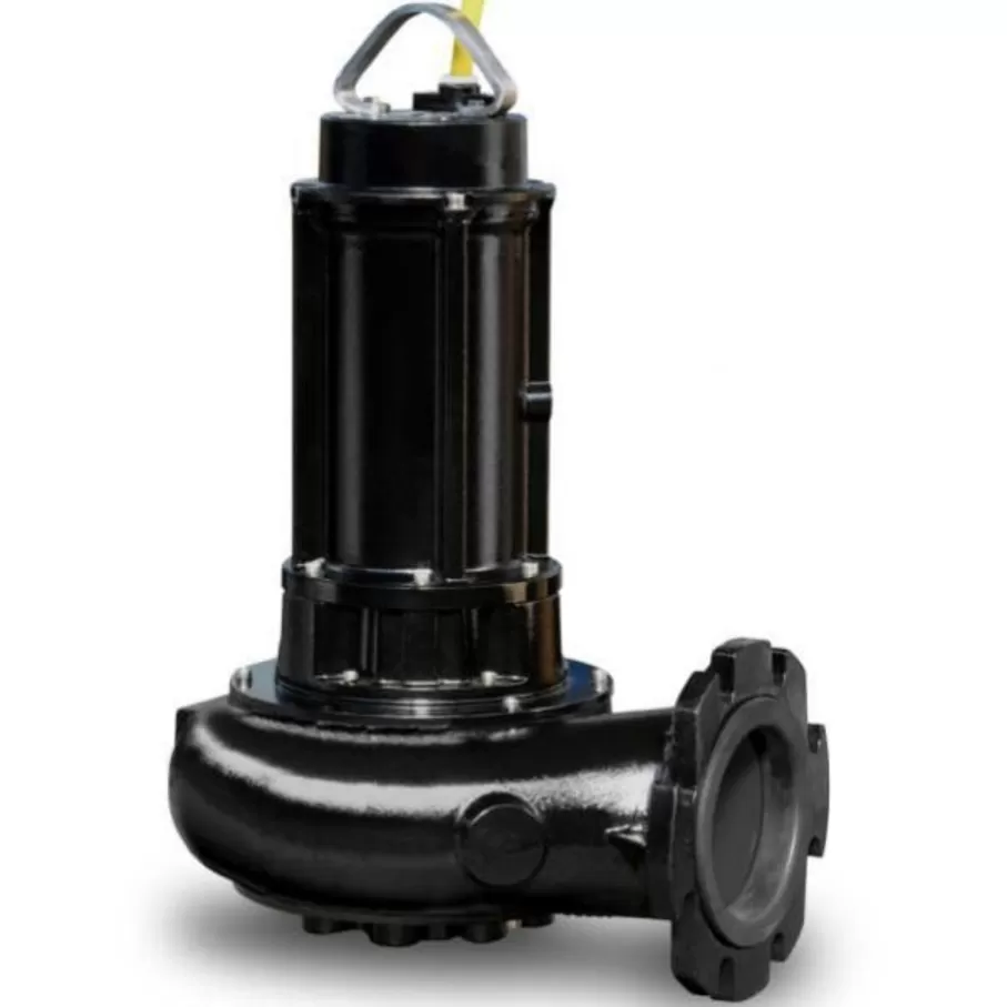 Погружной дренажный насос Zenit APP 750/2/G50H устанавливается на грунт (горизонтальную поверхность) своей нержавеющей всасывающей решеткой на глубину до 20 метров для откачки атмосферной или дренажной воды. Если вода содержит песок или другие твердые частички размером до 10 мм, то защитная система гидравлической части насоса обеспечивает выталкивание этих взвешенных частиц и предотвращает блокировку рабочего колеса. Другой особенностью конструкции является то, что три механических уплотнения установлены в камере с маслом, имеющей простой фланцевый доступ для осмотра и обслуживания, а комбинированный фланцевый и резьбовой напорный патрубок обеспечивает простоту установки. Корпус и крыльчатка большого напора отлиты из чугуна, вал – из нержавеющей стали. Данная модель успешно применяется для полива, в сельском хозяйстве, в решении бытовых вопросов, для устройства декоративных фонтанов. Рассчитан на 20 запусков в час. Гидравлические характеристики: данные производительности имеют диапазон от 7,2 до 28,8 м3 в час (от 120,0 до 480,0 л/мин), при напоре от 34,5 до 49,6 м водяного столба; оптимальная рабочая точка 28,8 м3/час (360 л/мин) при давлении 34,5 м водяного столба, с КПД равным 40 %. Насос оснащен экологическим электродвигателем сухого типа с тепловой защитой: 3-фазный, 2900 об/мин, мощность 7,2 кВт, напряжение 380 В, сила тока 14,5 А.
