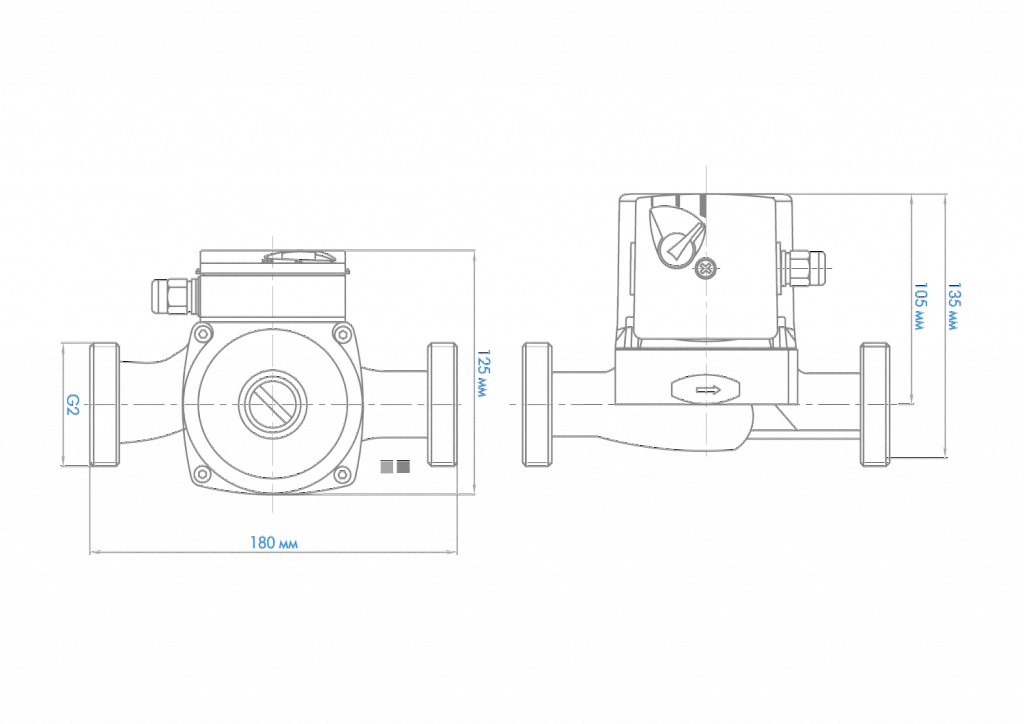 - Установочный размер между присоединительными фланцами составляет 180 мм, что обеспечивает совместимость и удобство при монтаже