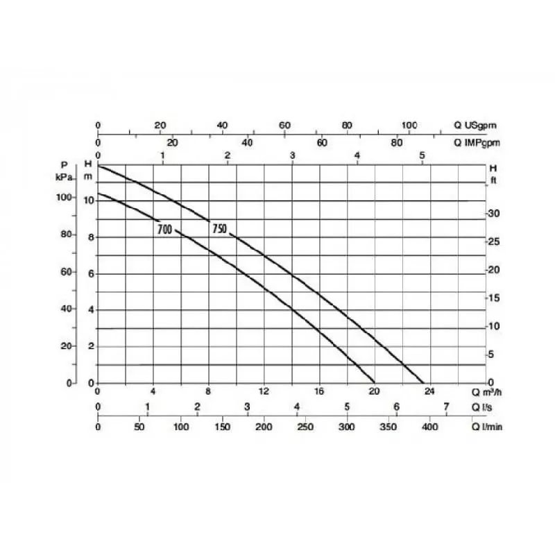 Графические характеристики фекального насоса DAB FEKA BVP 700 M-A