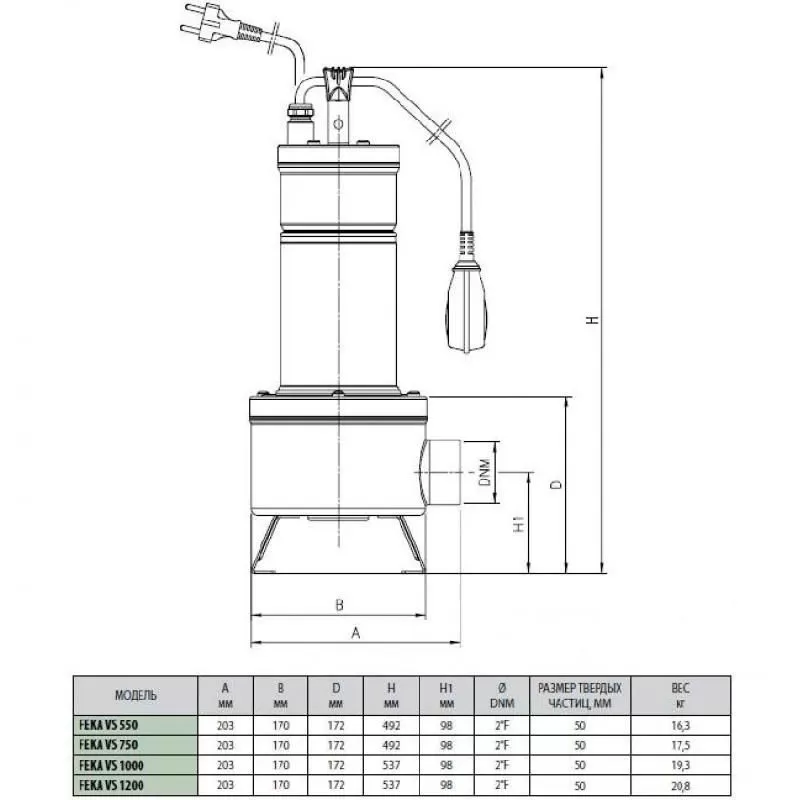 Схема фекального насоса DAB FEKA VS 1000 M-NA