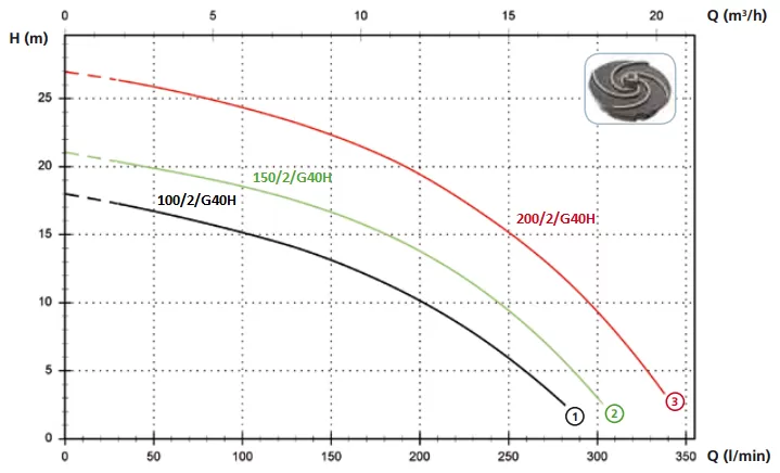 Погружной фекальный насос Zenit GR BluePRO 100/2/G40H используется для перекачивания сильнозагрязненных жидкостей с твердыми волокнистыми включениями, салфетками, бумагой и др. Предназначен для частных домов и небольших зданий. Модель представляет собой электромеханический комплекс в синем чугунном корпусе с погружной чугунной крыльчаткой многоканального открытого типа с системой измельчения на входе. Измельчительное устройство состоит из ножа треугольной формы и пластины с заточенными отверстиями. Благодаря этой системе, волокнистые включения измельчаются, проход загрязненных жидкостей обеспечивается без риска заклинивания крыльчатки. У насоса горизонтальный резьбовой патрубок 1½” (40мм) и удобная рукоятка из прочного пластика. Внутри, в масляной камере, установлены два механических уплотнения из карбида кремния. Третье V-образное кольцо непосредственно контактирует с жидкостью. Насос устанавливается на грунт на встроенную опору из чугуна. Максимальная глубина погружения 20 метров. Производительность насоса колеблется от 3,6 до 14,4 м3/час (от 60 до 240 л/мин), напор от 6,9 до 16,4 метров водяного столба. При этом оптимальная рабочая точка 10,8 м3/час (180 л/мин) при давлении 11,5 метров водяного столба.