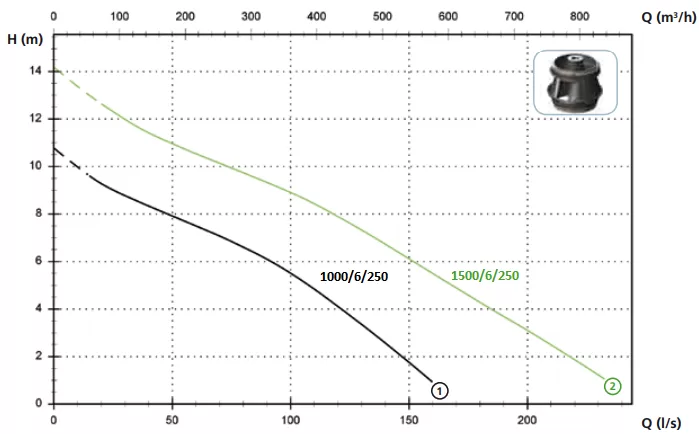 Погружной фекальный насос Zenit SBP_1500/6/250 относится к серии насосов средней мощности, используемых для грязной воды с твердыми телами и другими активными осадками. Данная модель применяется в очистных сооружениях, системах канализации, установках для подъема стоков и им подобных устройствах. Модель имеет чугунный корпус и чугунную двухканальную закрытую крыльчатку. Большой свободный интегральный просвет позволяет выброс твердых тел, что предотвращает блокировку. Свободный проход твердых частиц до 140 мм. У насоса горизонтальный фланцевый напорный патрубок 250 мм и удобная рукоятка. Внутри находятся механические уплотнения из карбида кремния, установленные серийно в осматриваемой масляной камере и одно механическое оппозитное уплотнение из графито-глиноземной смеси, смазываемое моторным маслом. Насос устанавливают на грунт на дополнительно приобретаемую опору на глубину до 20 метров. По запросу поставляются насосы с системой охлаждения для вертикальной и горизонтальной сухой установки. В качестве охлаждающей жидкости можно использовать откачиваемую жидкость, если она не очень вязкая, не имеет много примесей, или жидкость, поступающую из внешнего источника.