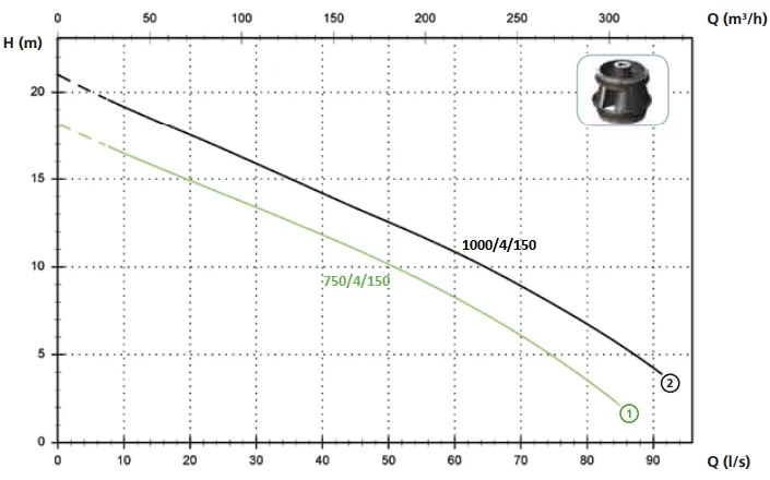 Погружной фекальный насос Zenit SBP_750/4/150 относится к серии насосов средней мощности, используемых для грязной воды с твердыми телами и другими активными осадками. Данная модель применяется в очистных сооружениях, системах канализации, установках для подъема стоков и им подобных устройствах. Модель имеет чугунный корпус и чугунную двухканальную закрытую крыльчатку. Большой свободный интегральный просвет позволяет выброс твердых тел, что предотвращает блокировку. Свободный проход твердых частиц до 70 мм. У насоса горизонтальный фланцевый напорный патрубок 150 мм и удобная рукоятка. Внутри находятся механические уплотнения из карбида кремния, установленные серийно в осматриваемой масляной камере и одно механическое оппозитное уплотнение из графито-глиноземной смеси, смазываемое моторным маслом. Насос устанавливают на грунт на дополнительно приобретаемую опору на глубину до 20 метров. По запросу поставляются насосы с системой охлаждения для вертикальной и горизонтальной сухой установки. В качестве охлаждающей жидкости можно использовать откачиваемую жидкость, если она не очень вязкая, не имеет много примесей, или жидкость, поступающую из внешнего источника.