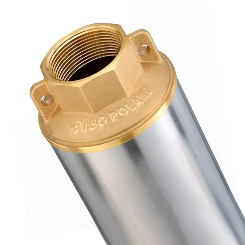 Насос для скважины IBO 3Ti 37 кабель 20 метров 3–х дюймовые многоступенчатые погружные насосы диаметром 74 мм с повышенной стойкостью к песку, рассчитаны на 3 и 4– дюймовые скважины. Напорная характеристика насоса составляет 152 м при максимальной производительности в 3 м³/час, при этом мощность электродвигателя составляет 1100 Вт. Эффект повышенной устойчивости к песку был достигнут благодаря использованию «плавающих лопастных колес» и выбору износостойких материалов: латуни, нержавеющей стали AISI 304 и высококачественного пластика. В связи с этим гарантийный срок на насос 1100 Вт предоставляется на 2 года Конденсатор насоса IBO 3Ti 37 кабель 20 метров встроен в двигатель, благодаря чему электрическая установка намного проще, чем в случае насосов со стартовой коробкой. Длинна кабеля насоса 1100 Вт составляет 20 м. Насосы оснащены тепловой защитой, установленной в обмотке двигателя. Насосы серии 3” Ti благодаря своей бесперебойной работе и высоким параметрам были признаны чаще всего устанавливаемыми насосами в Польше.