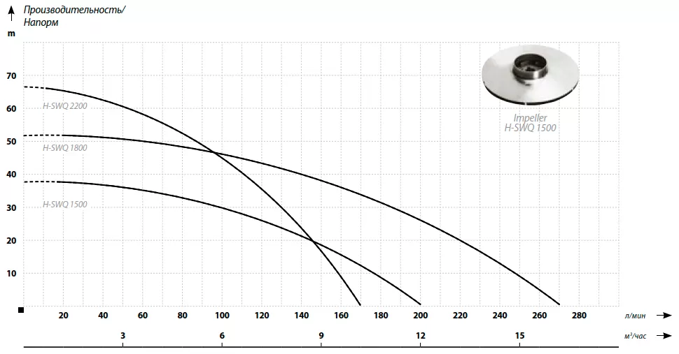 Графические характеристики дренажного насоса IBO H-SWQ 1500