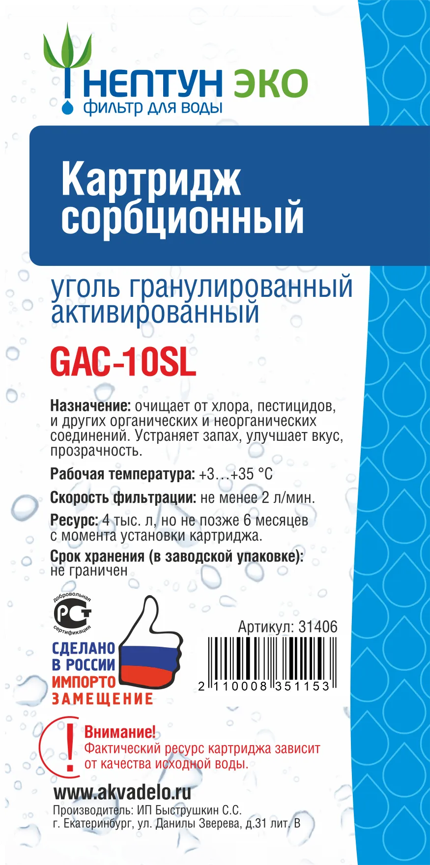 Картридж сорбционный угольный «Нептун» (стандарт 10SL)