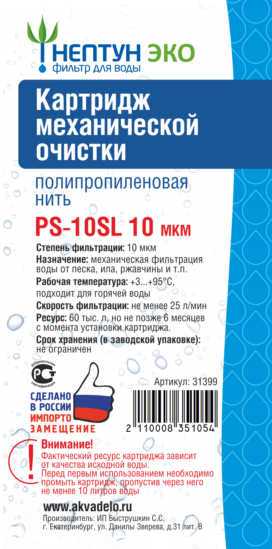 Это обзор стандартного 10-дюймового нитяного картриджа, предназначенного для удаления механических примесей из воды.