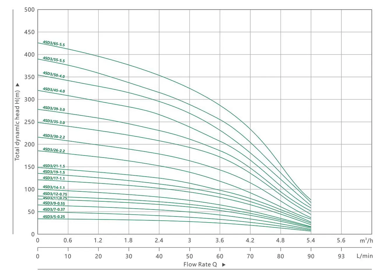 Серия 4SDM изготовлена из нержавеющей стали, обеспечивая долгий срок службы и надежность в эксплуатации. Насос имеет максимальный напор до 122 метров и максимальный расход 5.4 м³/час, что делает его идеальным выбором для использования в глубоких скважинах. Благодаря мощности 1500 Вт и высокой производительности 1.32 м³/час, он способен обеспечивать эффективную работу системы водоснабжения.