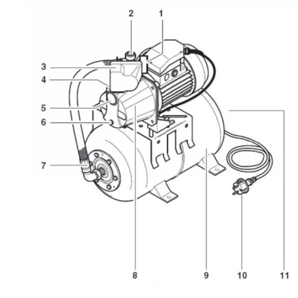 Станция водоснабжения ELPUMPS VB 25/1300 предназначена для автоматического поддержания рабочего давления в бытовых трубопроводах. Регулируемый автомат давления запускает и останавливает электромотор, в зависимости от степени заполнения гидроаккумулятора. Накопительный бак объемом 25 литров защищен от воздействия внешней среды. Высококачественная диафрагма выполнена из нетоксичного пищевого каучука EPDM, устойчивого к нагреву и замерзанию. Центробежная помпа выполнена в цельнолитом чугунном корпусе, благодаря чему устройство отличается низким уровнем производимого шума. Насос рассчитан на перекачивание воды с низким содержанием твердых примесей из колодцев, открытых водоемов и накопительных резервуаров.