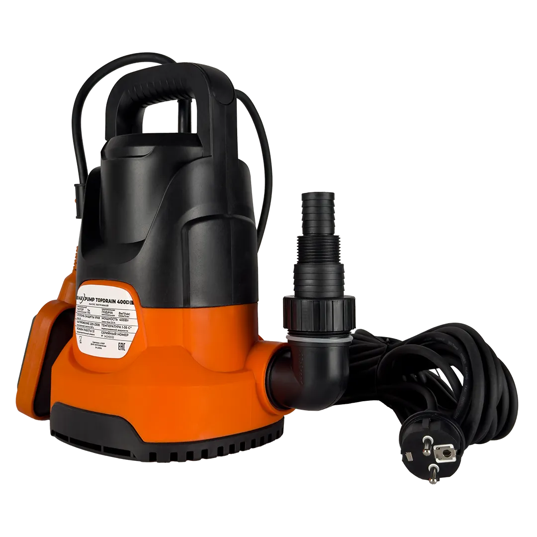 Надежность: TOPDRAIN 400D MAXPUMP имеет защиту от сухого хода поплавковым выключателем, что предотвращает повреждение насоса в случае, если вода не поступает в насос.