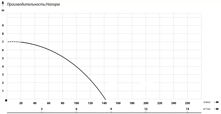 Максимальный напор: Насос имеет максимальный напор в 7 м, что позволяет перекачивать воду на значительные расстояния и высоты.