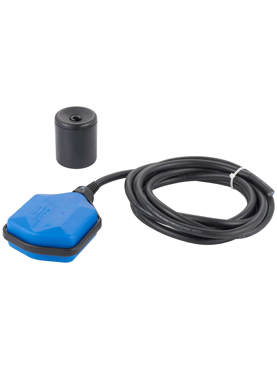 Поплавковый выключатель поставляется в комплекте с грузиком, с помощью которого настраивается момент срабатывания контактной группы. Длина кабеля 5 метра.