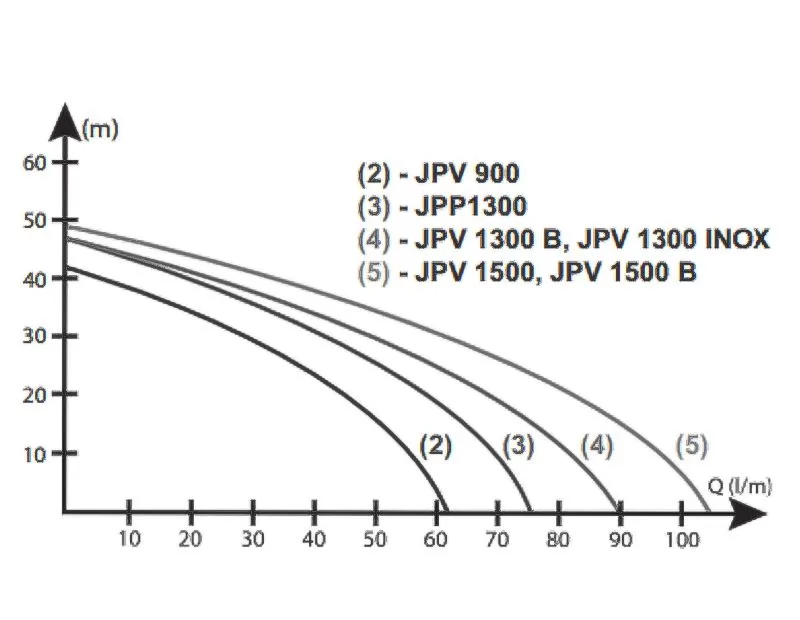 Графические характеристики ELPUMPS JPV 1300 INOX
