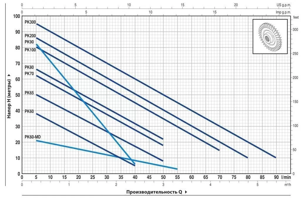 Одной из ключевых характеристик насоса PK является его максимальный напор впечатляющих 65 метров. Это означает, что вы можете быть уверены в надежности водоснабжения даже в высоких зданиях. Максимальный расход воды составляет 3 м³/час, что гарантирует, что у вас всегда будет достаточно воды для вашей семьи. Насос PK обладает прочным корпусом из чугуна, что придает ему долгий срок службы и устойчивость к внешним воздействиям. Материал корпуса также способствует хорошей теплоотдаче, что делает его надежным в разных температурных условиях, от 10 до 90 градусов по Цельсию.