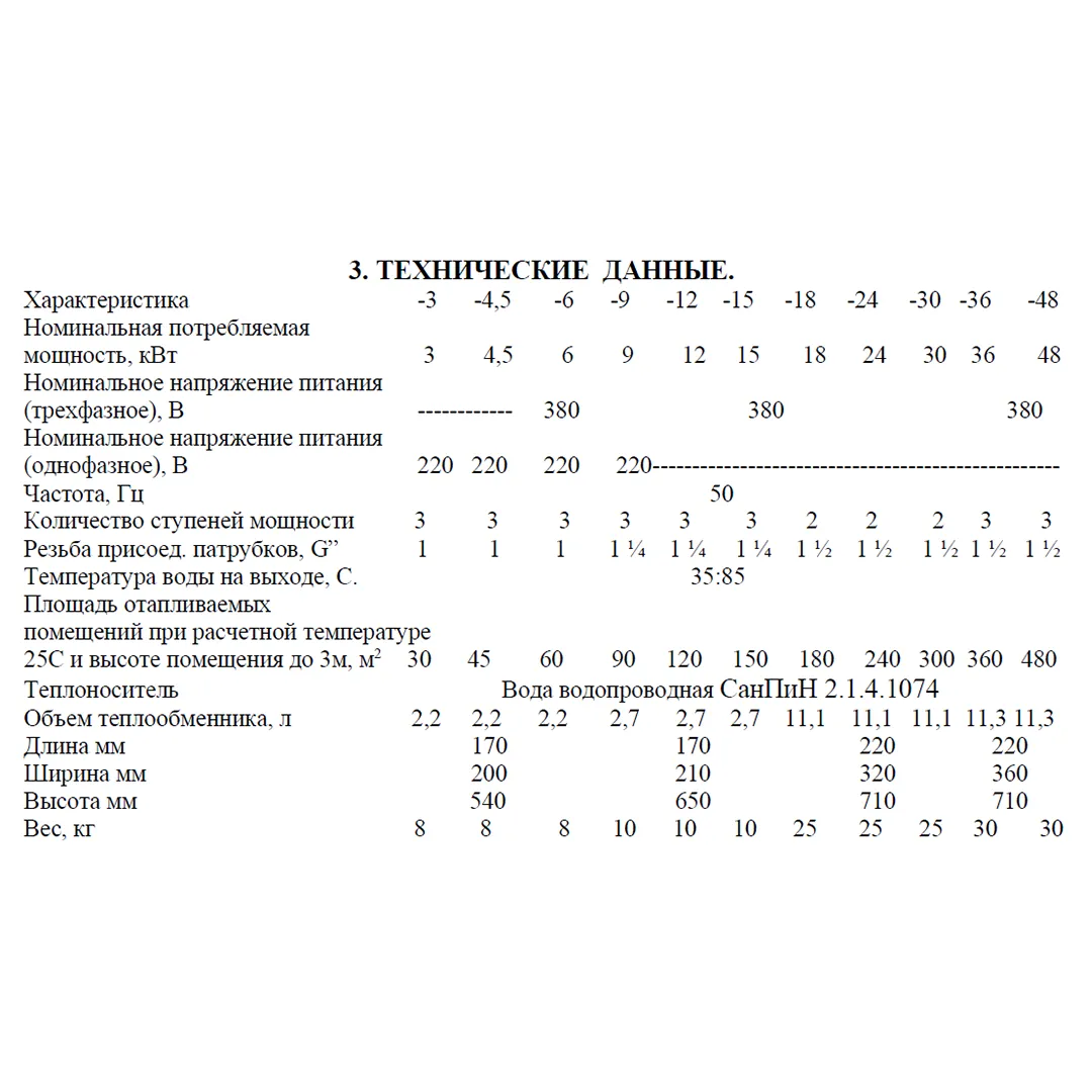 • Надежность и эффективность: Мощности в 3 кВт достаточно для стабильного обогрева помещений площадью до 30 м² (при стандартной высоте потолков и базовой теплоизоляции). Котел обеспечивает нагрев теплоносителя до температуры +85°C, поддерживая комфортный микроклимат в течение всего отопительного сезона.