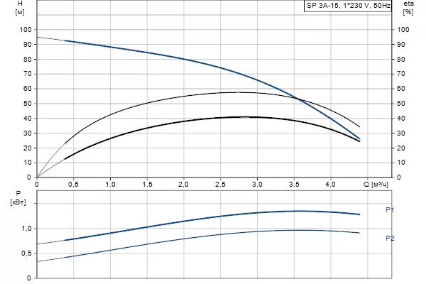 Графические характеристики Grundfos SP 3A-15