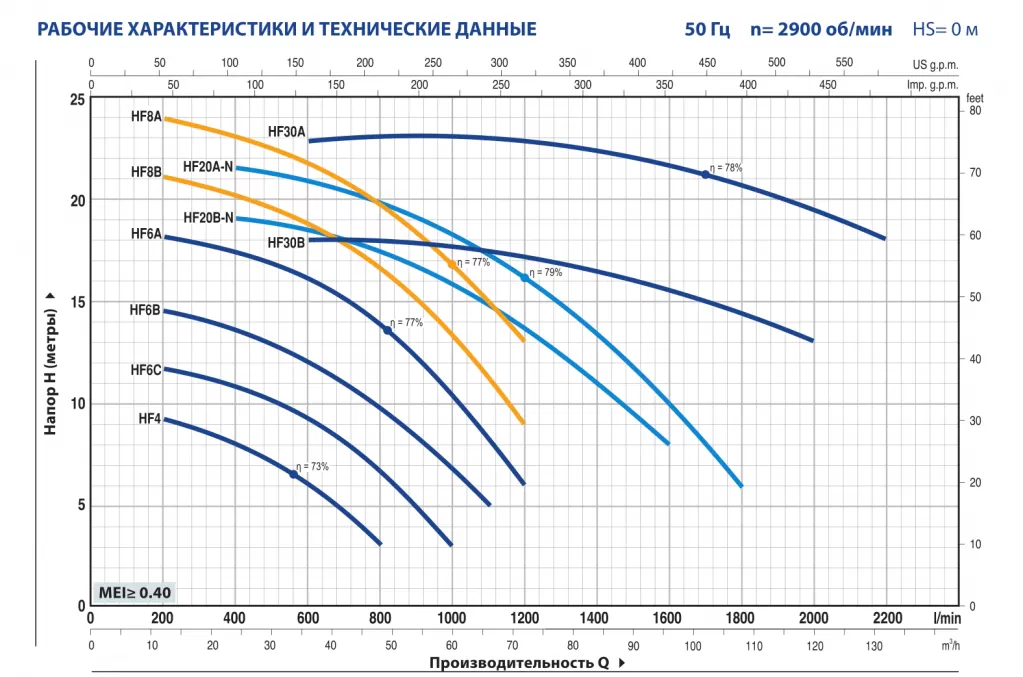 Центробежный насос Pedrollo HFm 20B-N (Италия) с резьбовыми патрубками 100 мм рекомендуется для решения задач, где необходим большой поток при сниженном напоре. Насос позволяет перекачивать чистую или слегка загрязненную воду и другие совместимые с чугуном жидкости. Применяется в системах водоснабжения, орошения, для забора воды из водоемов и емкостей. Производительность насоса от 24 до 96 м3/час (400 - 1600 л/мин), напор от 8 до 19 м.в.ст.Рабочая точка производительности 72 м3/ч (1200 л/мин) при давлении 13,5 м.в.ст. КПД насоса в указанной точке около 79 %.