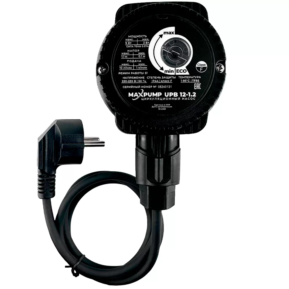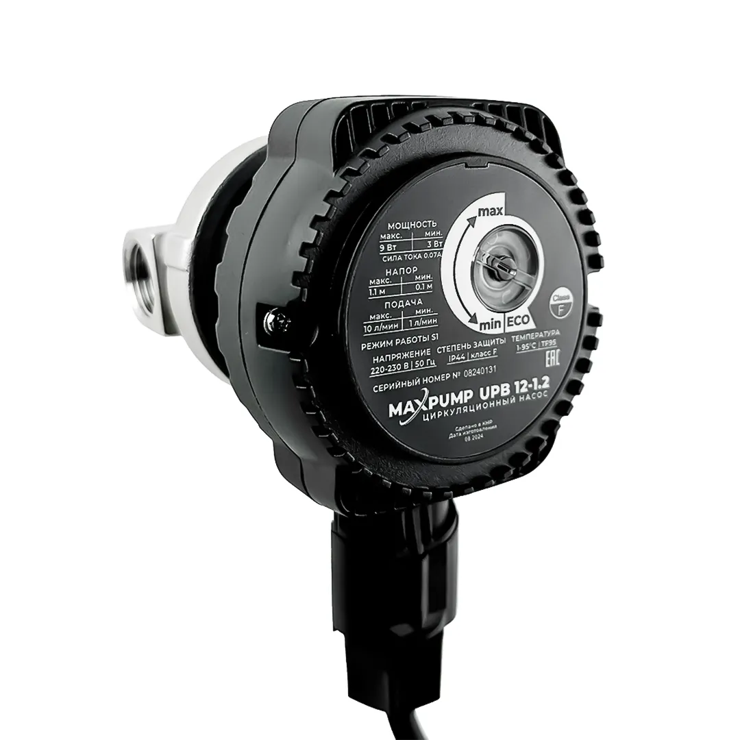 MAXPUMP UPB 12-1.2 оснащен поворотной ручкой для настройки мощности. Вы можете выбрать нужный режим работы насоса вручную или включить автоматический режим ECO, который обеспечивает оптимальный баланс между производительностью и экономией.