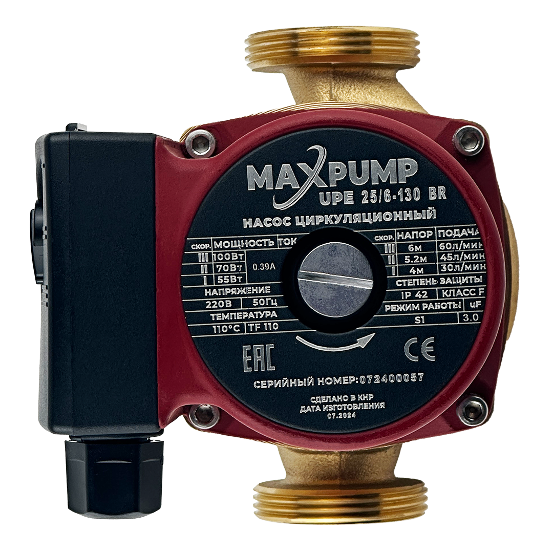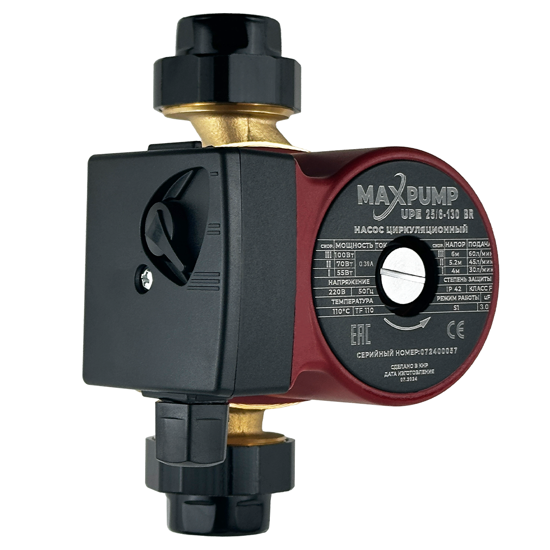 MAXPUMP UPE 25/6-130 BR предлагает три уровня мощности: 55 / 70 / 100Вт. Это позволяет вам адаптировать циркуляционный насос под ваши конкретные нужды, выбирая оптимальный режим работы. Высокая эффективность насоса обеспечивает максимальный напор до 6 метров и максимальный расход до 3.36 м³/ч. Такие показатели позволяют обеспечить надёжную циркуляцию воды в системах отопления и горячего водоснабжения, даже если у вас большая площадь.