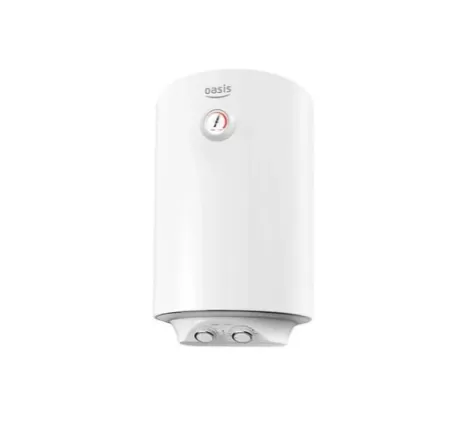 Водонагреватель Oasis VC-30 L представляет собой современное устройство, сочетающее в себе компактность, функциональность и практичность. Накопительная модель мощностью 1500 Вт способна нагреть 30 литров воды до температуры 75°C, буквально в считанные минуты, а после этого автоматически поддерживать заданный режим в течении нескольких часов. С этой задачей успешно справляется высокоэффективный нагревательный элемент (тэн), сделанный из меди. Трубки для воды с вращающейся циркуляцией, обеспечивают сверхбыстрый нагрев воды и защищают эмаль бака от коррозии. Экологически чистая теплоизоляция из уретановой интегральной пены надолго сохранит первоначальную температуру во внутреннем баке, уменьшая ваши затраты на электроэнергию. Кроме того, уровень питания можно регулировать отдельной поворотной ручкой. Покрытие внутреннего бака устойчивой к температурным перепадам сапфировой эмалью, сводит к минимуму возможность протекания или образования микротрещин. От электрохимической коррозии бак и нагревательный элемент защищает магниевый анод. В целях безопасности водонагреватель Oasis VC-30 L оснащен защитой от перегрева и избыточного давления воды.