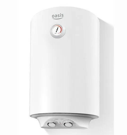 Водонагреватель Oasis VC-80 L представляет собой современное устройство, сочетающее в себе компактность, функциональность и практичность. Накопительная модель мощностью 1500 Вт способна нагреть 80 литров воды до температуры 75°C, буквально в считанные минуты, а после этого автоматически поддерживать заданный режим в течении нескольких часов. С этой задачей успешно справляется высокоэффективный нагревательный элемент (тэн), сделанный из меди. Трубки для воды с вращающейся циркуляцией, обеспечивают сверхбыстрый нагрев воды и защищают эмаль бака от коррозии. Экологически чистая теплоизоляция из уретановой интегральной пены надолго сохранит первоначальную температуру во внутреннем баке, уменьшая ваши затраты на электроэнергию. Кроме того, уровень питания можно регулировать отдельной поворотной ручкой. Покрытие внутреннего бака устойчивой к температурным перепадам сапфировой эмалью, сводит к минимуму возможность протекания или образования микротрещин. От электрохимической коррозии бак и нагревательный элемент защищает магниевый анод. В целях безопасности водонагреватель Oasis VC-80 L оснащен защитой от перегрева и избыточного давления воды.